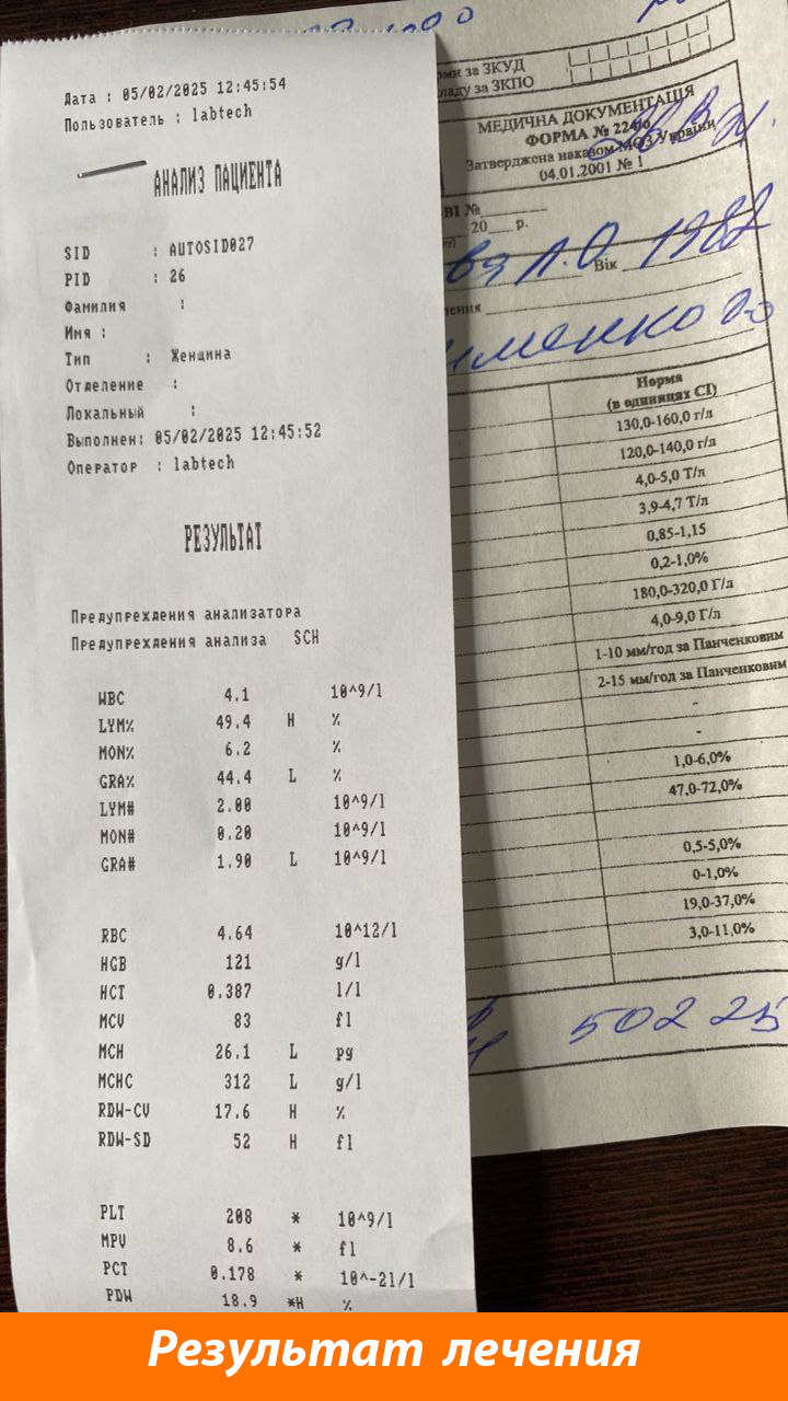 «У меня с рождения малокровие. А после рождения первого ребёнка упал показатель гемоглобина до 92. А потом вообще до 86. Мне выписывали аптечные препараты, БАДы, усиление меню, а показатель был всё равно ниже 100. Так и жила. Врачи назначали анализы, обследования. Периодически проходила курсы таблеток. Без результата.